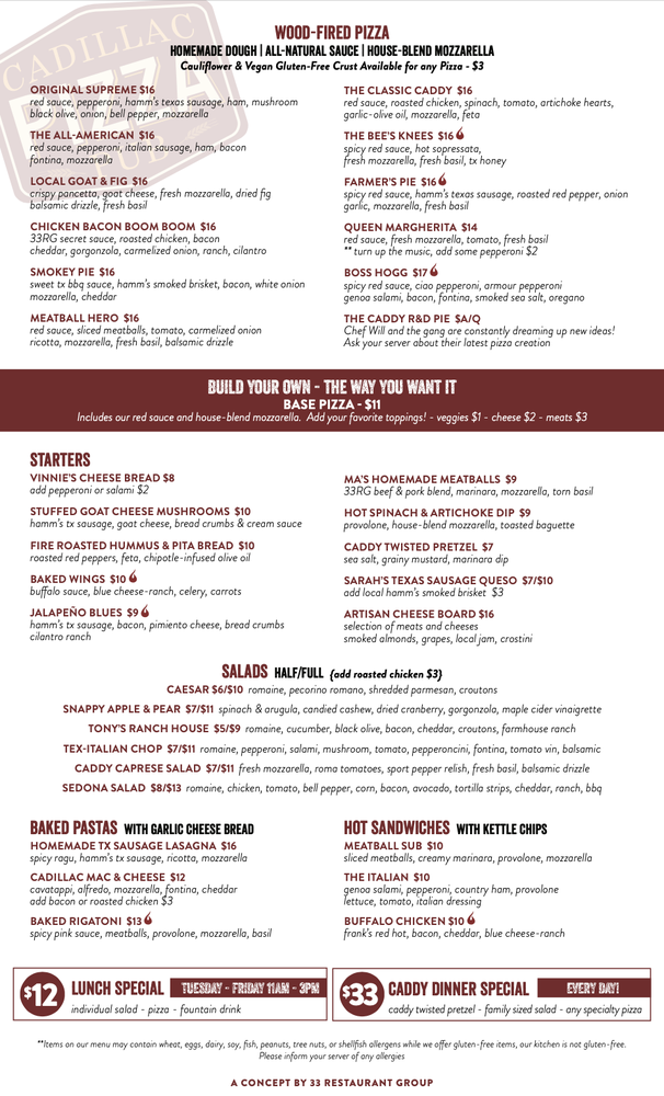 Welcome to Cadillac Pizza Pub, a vibrant destination in McKinney, TX, renowned for its mouthwatering wood-fired pizzas and inviting atmosphere. Here, guests enjoy a delightful fusion of specialty pies, such as the delectable Smokey Pie, crafted from fresh ingredients that elevate each bite. The menu caters to various preferences, featuring many vegetarian options alongside hearty classics.